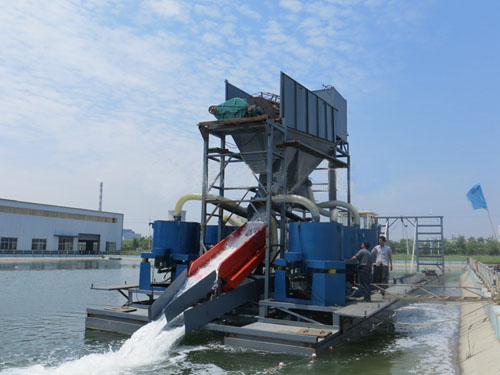 水套離心機淘金船的工作流程:船上的設備由八個系統(tǒng)組成。