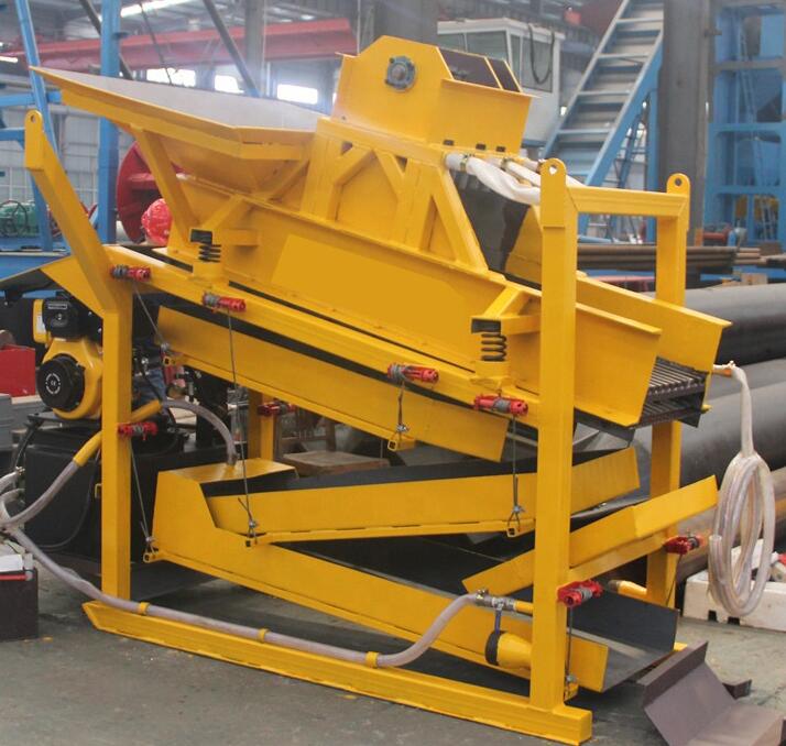 第二種小型的沙金機器 小型的沙金溜槽,這種小型的沙金溜槽上方有料斗和隔壁篩,可以將石塊隔離出去。把石頭隔離出去,含沙的礦料進入下方的沙金溜槽進行黃金的回收。這種沙金溜槽回收率比較高。自動化程度比較高,是現在比較普遍使用的小型沙金機器。 這幾種小型的沙金機器可以根據礦區和礦料的不同來選擇,很多客戶選擇小型的設備是主要用于探礦或者是小型小范圍的開采, 有了收益后再上大型的開采設備?,F在這幾種設備在非洲、南美洲等多個地區應用比較廣泛。砂金回收設備