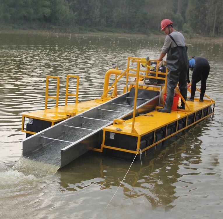 下面讓砂金機、選金機的生產廠家青州市魯晟沙礦機械有限公司給大家介紹一下它們的優勢: 這種沙金機移動非常方便,可以應用于多種的地形,無論地形是松軟的砂質還是堅硬的巖石,又或是石頭較多的都可以應用,并且一定也非常方便,可以滿足一邊開采一邊走的開發方式。這種對于大范圍的沙金礦區效果好,能節省多的生產成本,增加開采效率。 這種沙金機是一體式的,所有的組成都是一體式,水泵也被設計在了設備上,走到哪里就開采到哪里,現在非常流行。這種設備可以用柴油發電來帶動,并且可以采用多種工程機械上料。比如翻斗車、勾機、裝載機等。還可以用砂泵進行上料。 蠕動溜槽