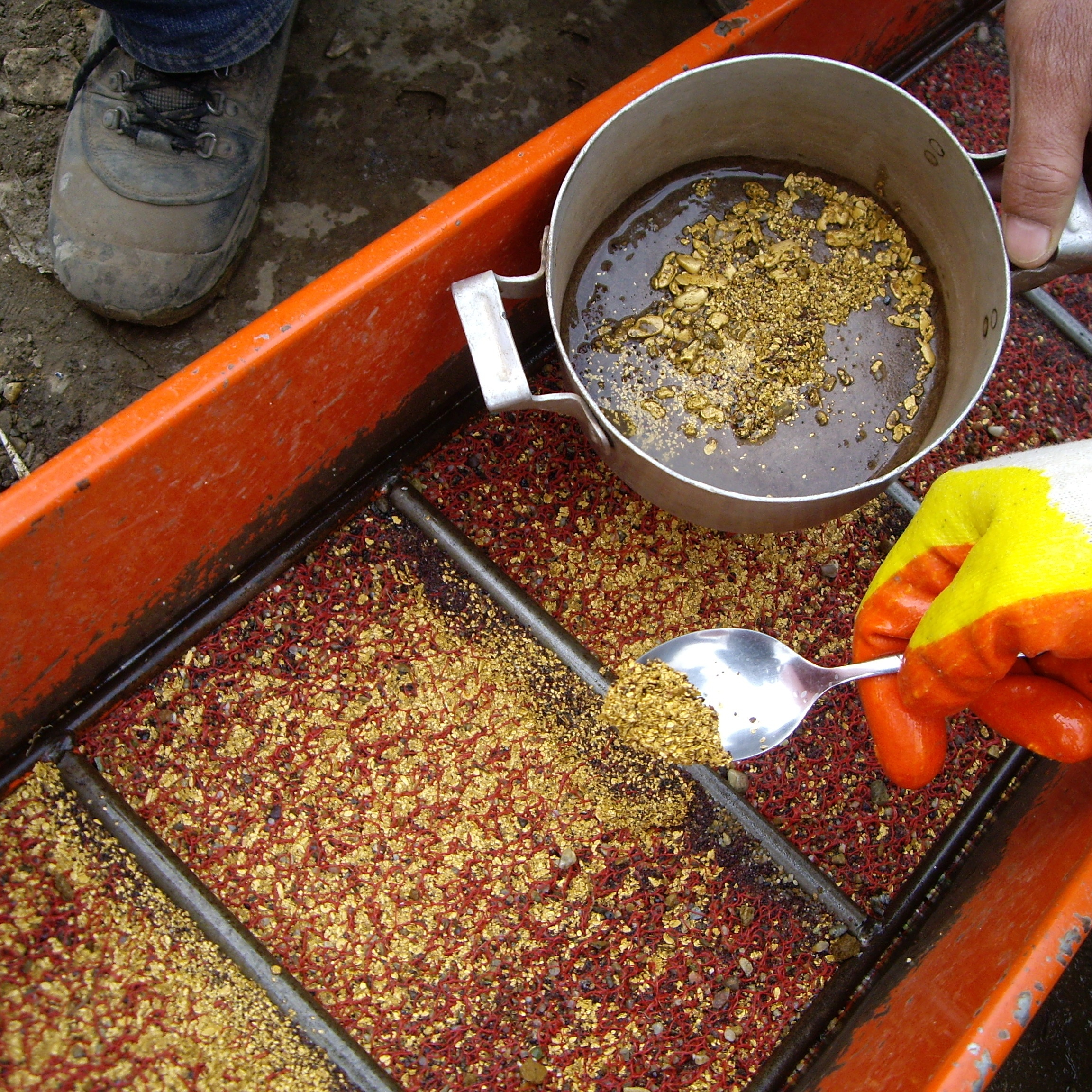 根據E值,礦石分選的難易程度可分為極易重選(E>2.5)、容易重選(E=1.5~1.25)、中等可選(E=1.75~1.5)、比較難選(E=1. 5~1.25)和極難重選(E<1.25)等幾個等級。由于金礦石中金礦物的密度較脈石礦物大得多,E值較大,所以金礦石宜采用重選法處理。 重選法是一種古老的選礦方法,并較早地應用于黃金選礦生產中,是一種主要的選金方法。砂金礦基本上都是利用重選法。用重選法從脈金礦中回收金也十分有效。地露天開采的砂金礦而言,還可用蠕動溜槽、水套離心機選金。