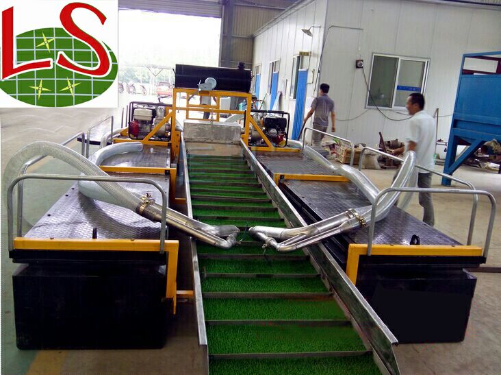 以前回收一般是采用浮選、氫化、堆浸等工藝進(jìn)行黃金回收,但是這些工藝都有缺點(diǎn),一是污染嚴(yán)重,二是浮選很多包裹的顆粒金收不住。所以現(xiàn)在使用比較廣泛的是重選法。采用重選設(shè)備將黃金進(jìn)行回收,重選設(shè)備有很多優(yōu)點(diǎn),比如沒有污染,另外重選設(shè)備有很多種可以根據(jù)礦料不同的情況來進(jìn)行并聯(lián)使用。比如回收顆粒金的光用來回收顆粒金,回收毛金、片金的光用來回收這兩種形態(tài)的。魯晟機(jī)械生產(chǎn)的尾礦重選設(shè)備,現(xiàn)在在多個(gè)礦區(qū)有所應(yīng)用,是用來回收選礦廠尾礦的。砂泵采金船