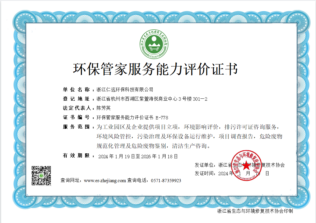 ABOUT 浙江仁遠環保科技有限公司浙江仁遠環保科技有限公司是一家專業從事節能環保產業,致力打造中國環保產業的一家具有影響力的科技服務型企業。公司緊緊圍繞保護環境、共建碧水、藍天、凈土的企業宗旨,全力打通企業節能環保的奇經八脈,現已逐步發展為集咨詢、設計、工程、運營、管家服務于一體的一站式全面解決方案的企業。公司核心業務涵蓋:專項節能環保咨詢審核服務;環保管家服務;環保技術服務;環境治理工程服務四大服務領域。具體業務包括:可行性研究報告、突發環境事件應急預案、三同時竣工驗收報告、排污許可證申報、年度執行報告、節能評估、能源審計、清潔生產審核、節水型企業創建、工業廢水廢氣治理、綠色工廠申報、整治提升方案、行業整治驗收報告、污染地塊場地調查報告、環境統計填報、固廢平臺填報、溫室氣體排放報告、碳核算報告、碳足跡等雙碳業務、環保管家、環保技術研發。主要服務于農藥醫藥化工、光伏、紡織印染、造紙、金屬表面處理、食品加工、機械加工、船舶制造、噴涂印刷等制造業及社會服務業。 more > |